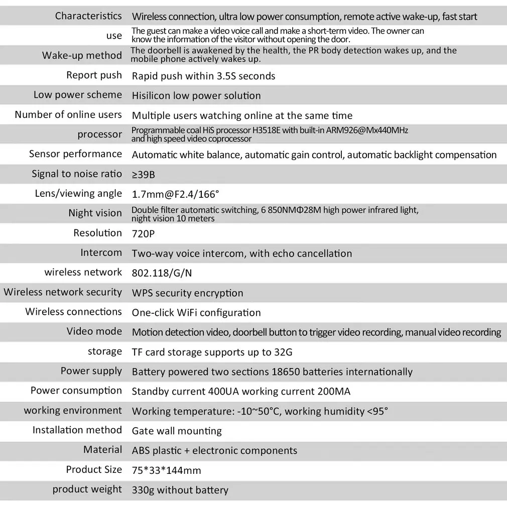 Addition Information of Smart Wireless Phone Door Bell Camera WiFi Smart Video Intercom Ring Doorbell Motion Detection Vide